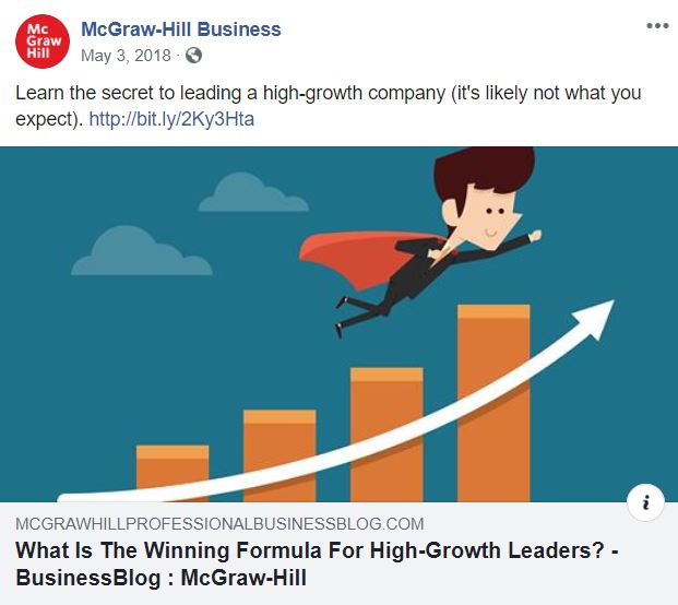 As the Content Marketing and Engagement Manager for the McGraw-Hill Business Blog from June 2017-January 2019, I created annual content calendars, sourced and edited blog content, optimized blogs for search, and published weekly posts in WordPress. I also wrote and managed social media posts to promote the blog (see below).